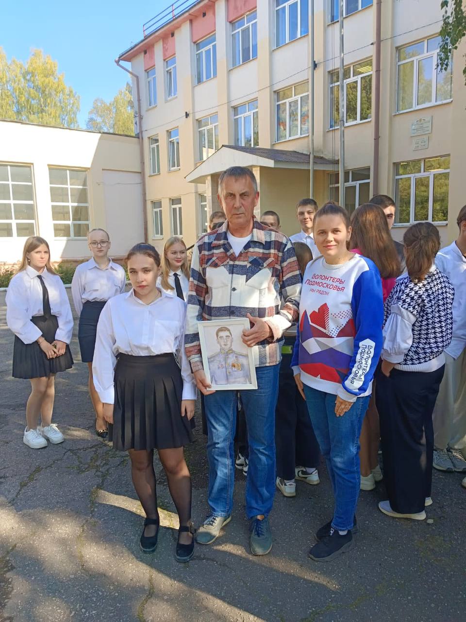 Школьники задавали интересующие вопросы, а после ученица Алина Чурикова вручила Николаю Леонидовичу портрет Алексея, который сама нарисовала!