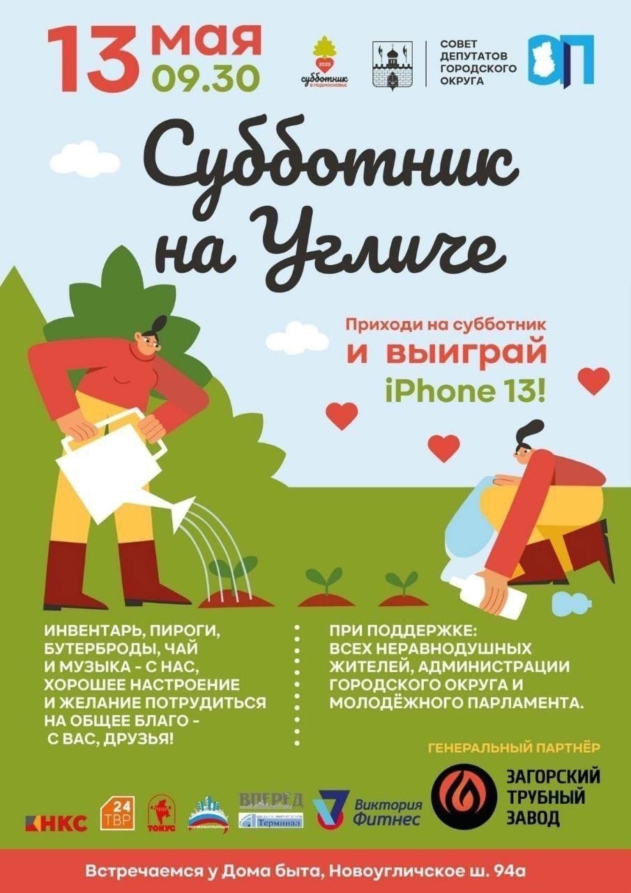 В эту субботу, 13 мая, в микрорайоне Углич пройдёт большой субботник. Начало в 9.30. География работ – от д.50 по Новоугличскому шоссе до д. 11А по улице Дружбы. Участвуют депутаты, общественники, все-все-все неравнодушные люди!
