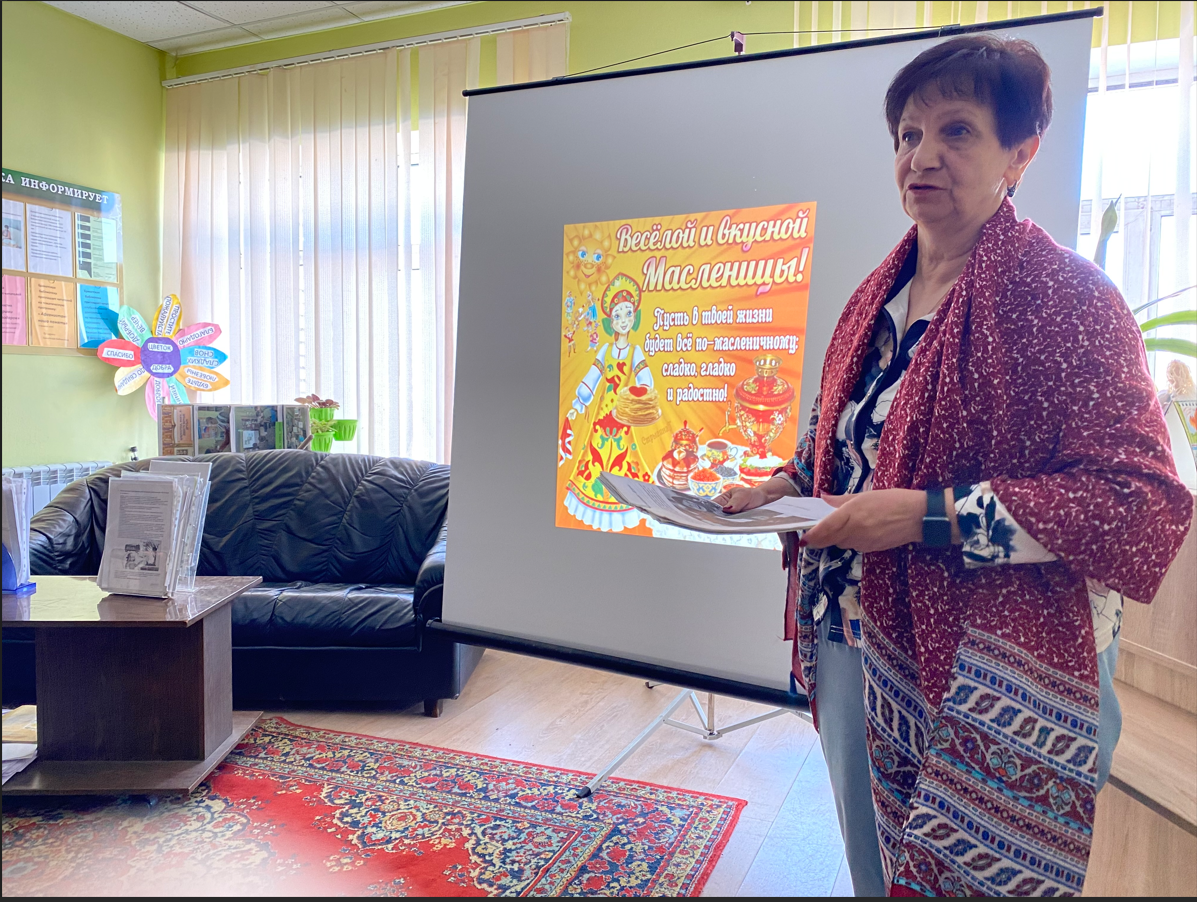 Сотрудница Брикетской библиотеки Рузского городского округа пригласила на Масленицу участников клуба «Активное долголетие».
