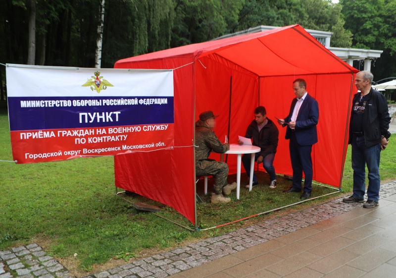 Для желающих поступить на службу по контракту в Воскресенске установлена информационная палатка