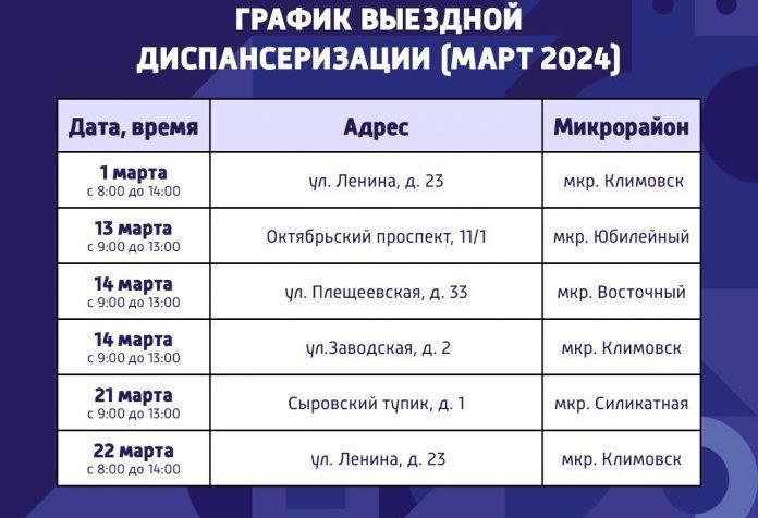 График выездной диспансеризации в Подольске на март 2024 года