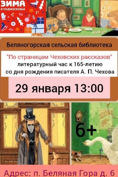 Беляногорская сельская библиотека приглашает всех желающих на литературный час «По страницам Чеховских рассказов» 29 января в 13.00.