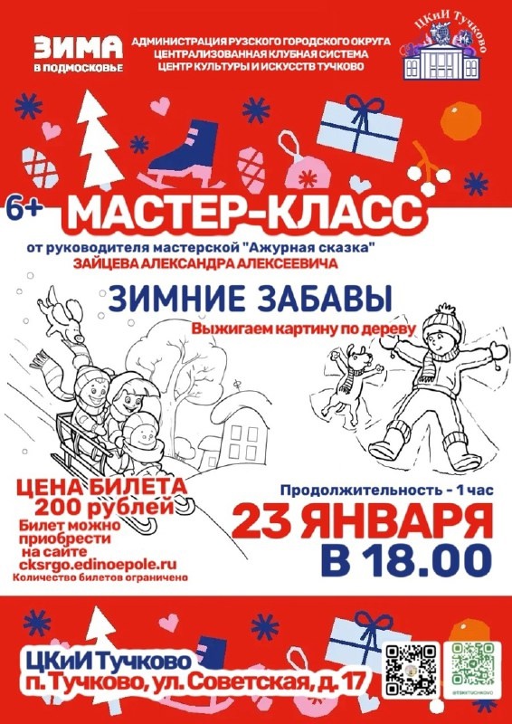 Центр культуры и искусств Тучково приглашает всех желающих на мастер-класс «Зимние забавы» 23 января в 18.00.