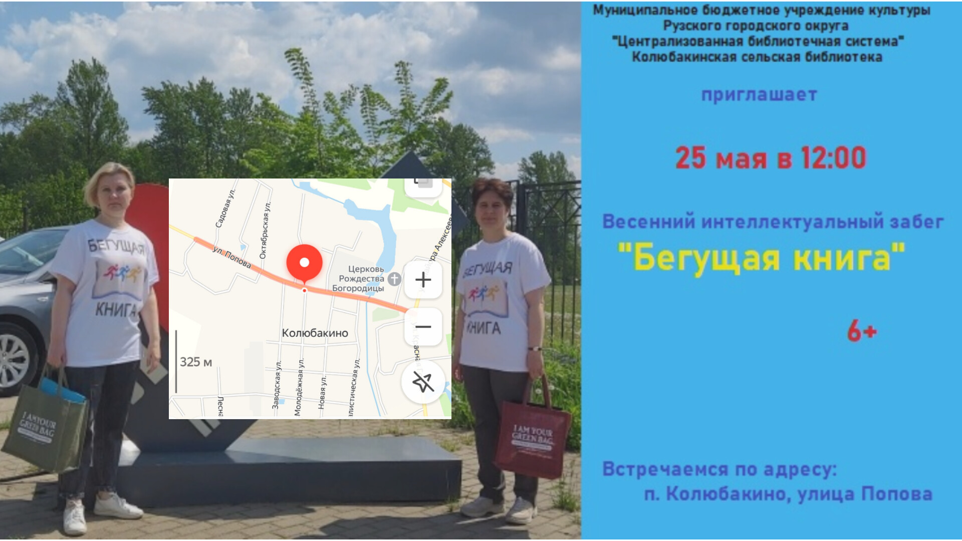 25 мая Колюбакинская сельская библиотека Рузского городского округа присоединится к ежегодной масштабной социокультурной акции «Бегущая книга». Всероссийский весенний интеллектуальный забег приурочен к Году семьи в России.
